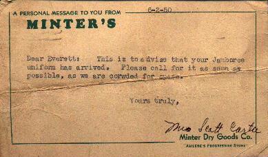 Minters Department Store notifications to pickup Jamboree Uniform
